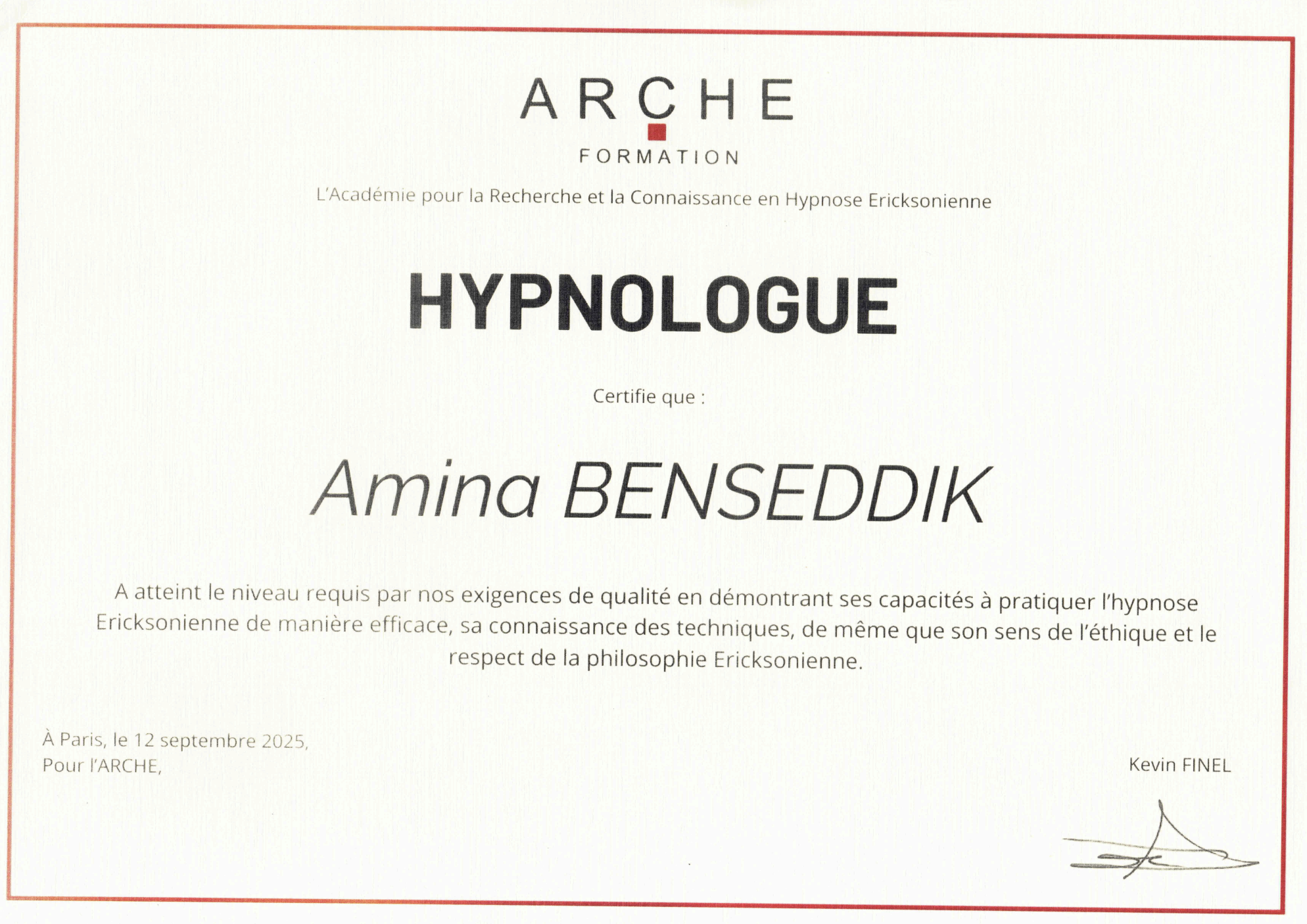 Cette formation m’a permis de développer des compétences solides et approfondies en hypnose ericksonnienne , afin de proposer un accompagnement précis, respectueux et efficace.